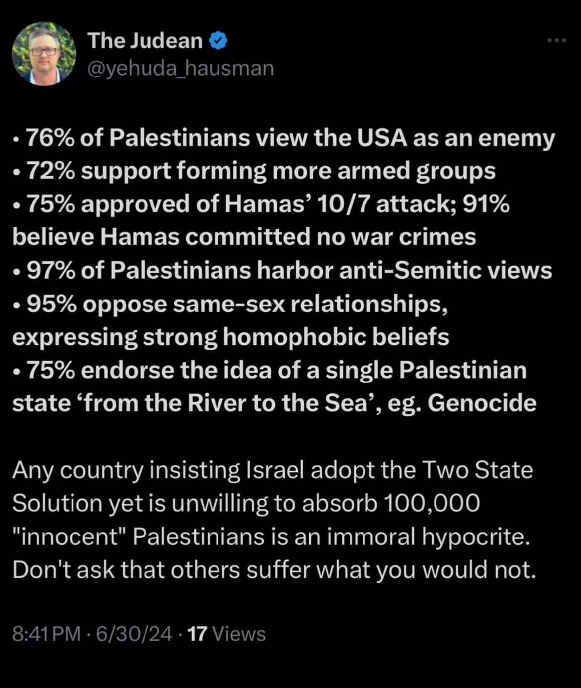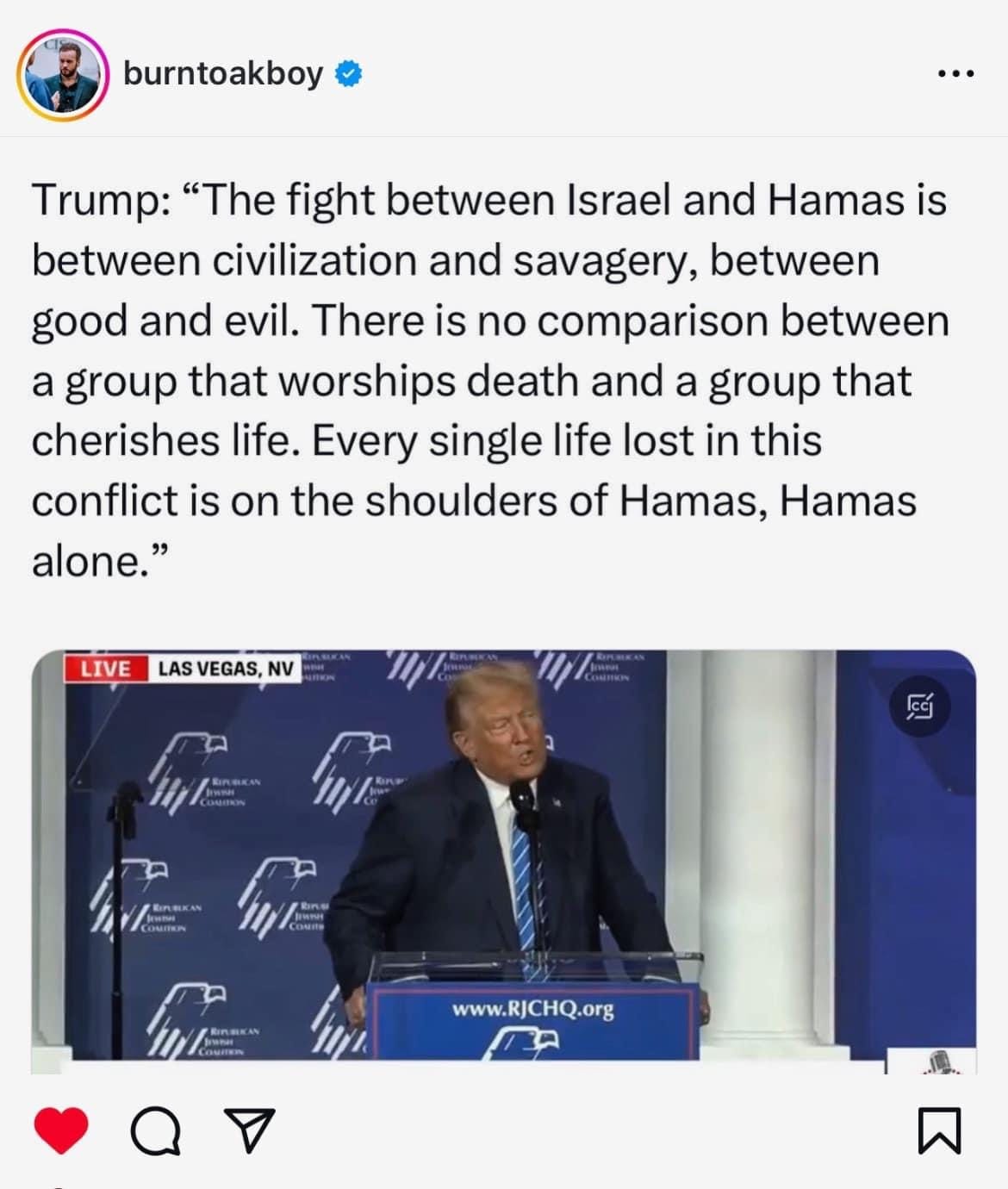 This is the moral clarity Biden should have put forth every single day since October 7th. If so, the war would be over, the hostages (both American and Israeli, would be home).